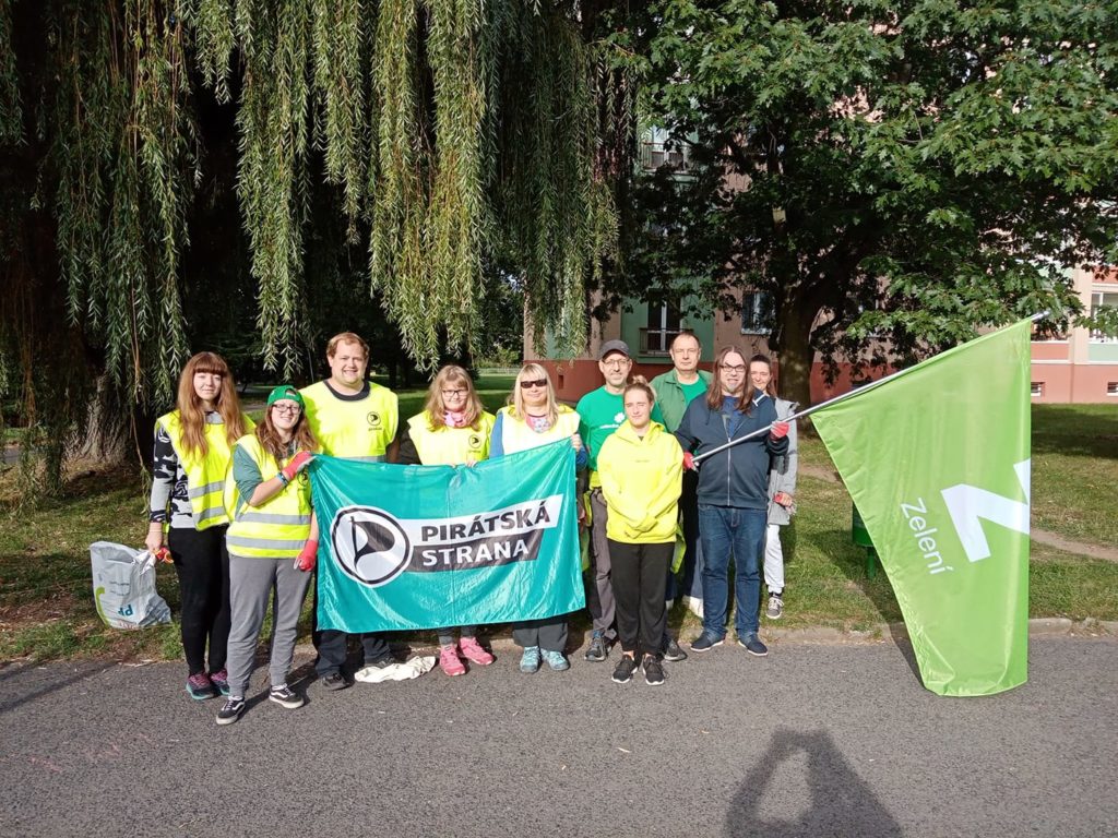 Mostečtí Piráti a Zelení uklidili park Hrabák v rámci celorepublikového dne Ukliďme Česko.